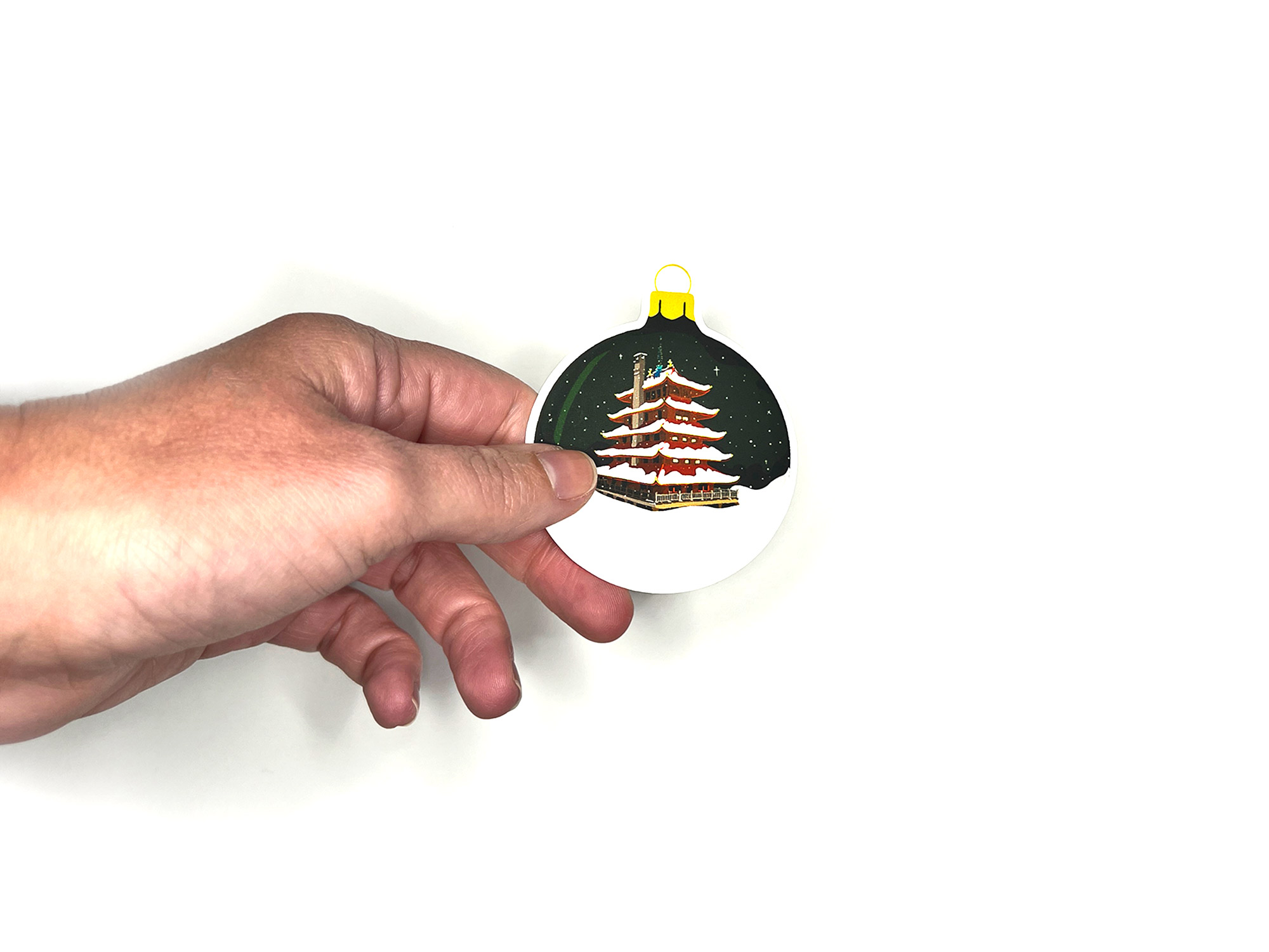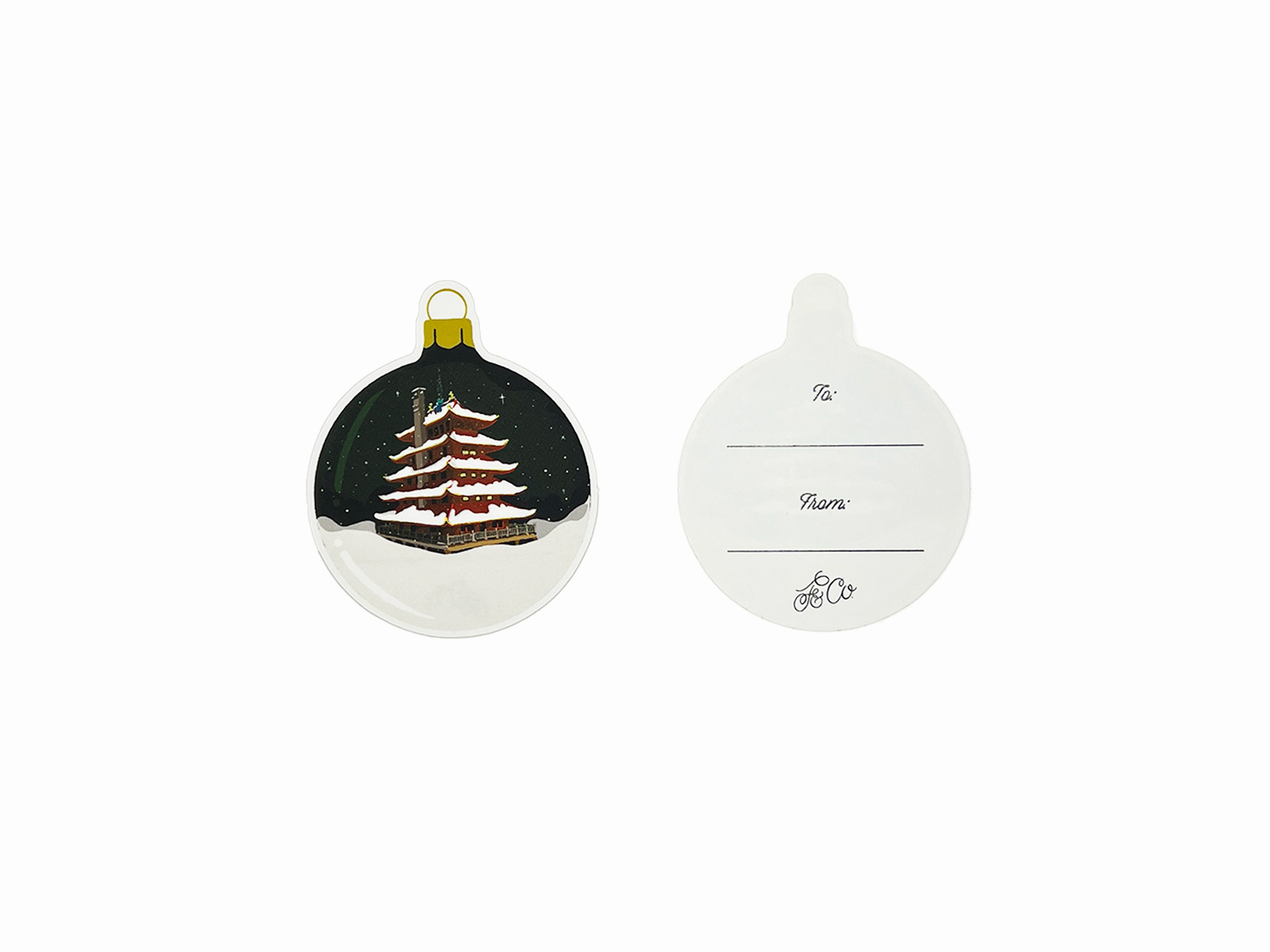 Is it a sticker or a gift tag? You get to decide! Featuring an illustration of the Reading Pagoda inside of a glass ornament, the sticker tag is perfect for gifting around the holidays. Includes recipient and giver space on the back to write-in names and add string to attach to a gift.